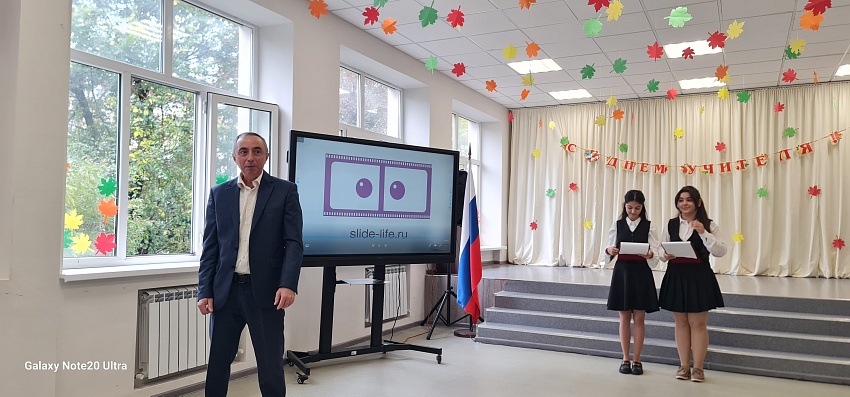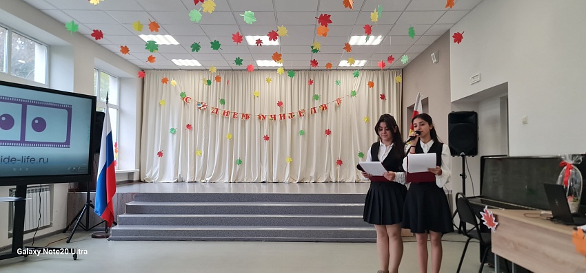В преддверии праздника в МБОУ СОШ №21 под руководством советника директора Дряевой Г.А. прошла музыкально-творческая встреча с учителями. Ученики подготовили портреты любимых учителей, (учитель Ходова Г.А.), также наши юные первоклашки встречали их с пожеланиями, была сделана фотозона,где все с радостью фотографировались. Завершился день праздничным концертом. Прошло все великолепно.