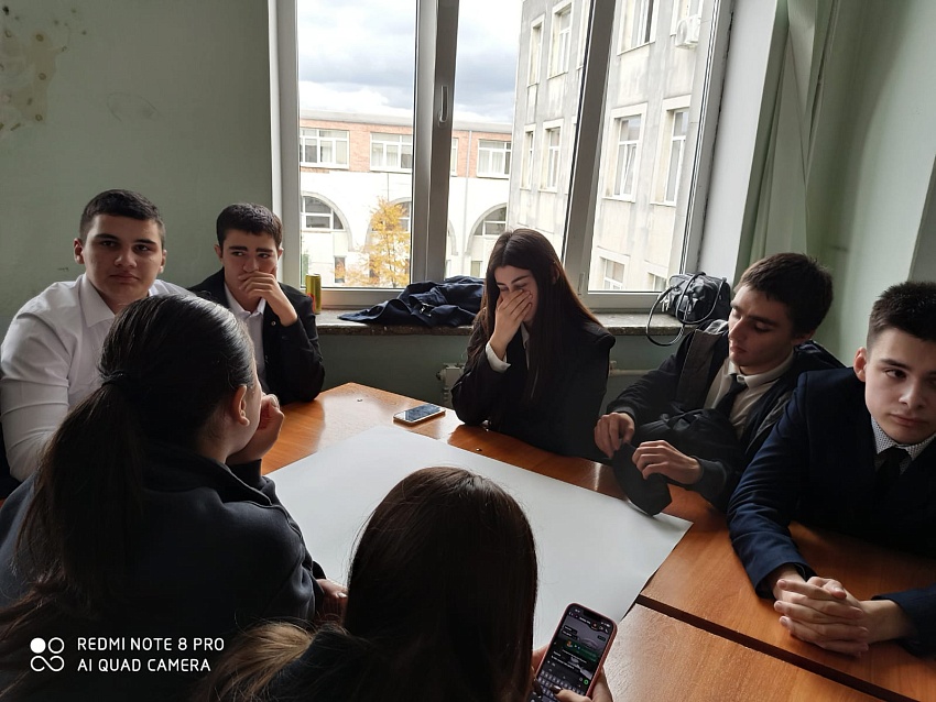 11 класс с кл.руководителем Кравченко И.В.на игре "Хакатон".