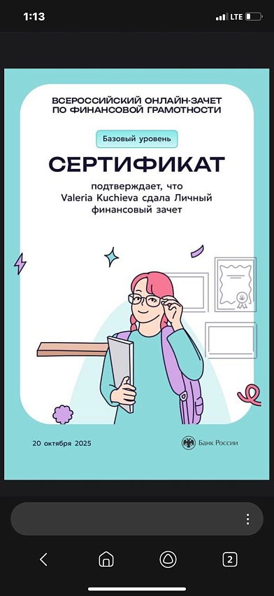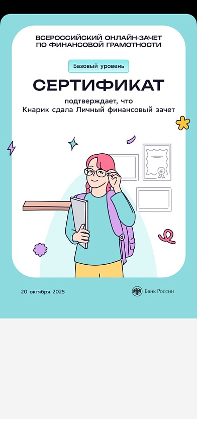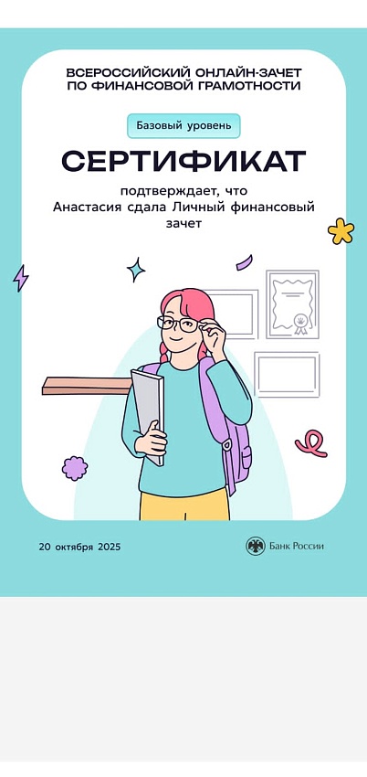 Всероссийский онлайн-зачет по финансовой грамотности прошли ученики 21 школы.
