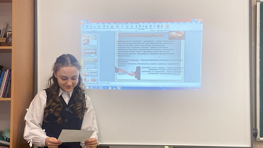 На классном часе обсудили понятие «коррупция», формы её проявления и законодательство, регулирующее борьбу с коррупцией.